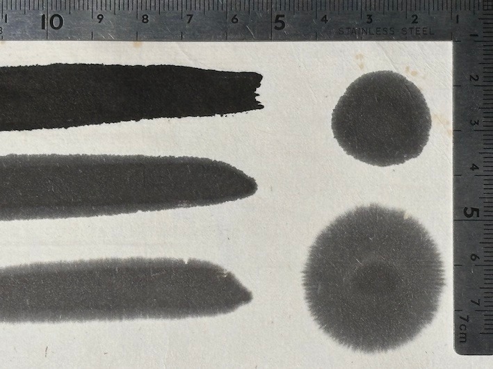 淡墨は茶紫系の黒、のびが良く漢字かな作品用に最適です。