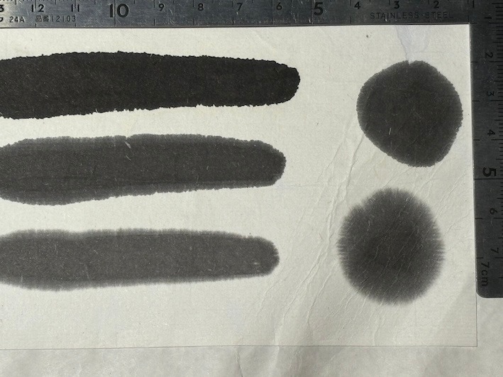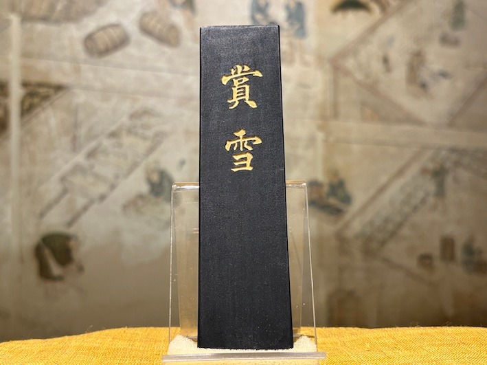 賞雪は、菜種油煙と上質の膠で作った墨で濃墨ですと美しく光沢のある純黒、淡墨は茶紫系の黒、のびが良く漢字かな作品用に最適。