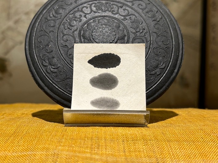 菜種油煙と、草木の中より最も青系に適した色素を抽出し、混合して造った墨で極端な色調をさけ渋みのある薄青系の墨です。