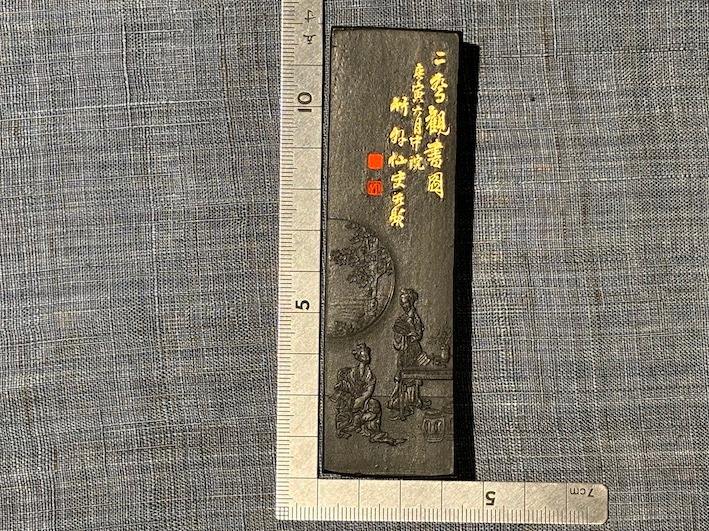 濃墨の時、吸収性の有る明るい純黒で、淡墨では穏やかな黒から、にじみでてくる、かすかなかすかな青が非常に神秘的です。松煙墨は、古くなればなるほど青墨化が進むと言われます。
