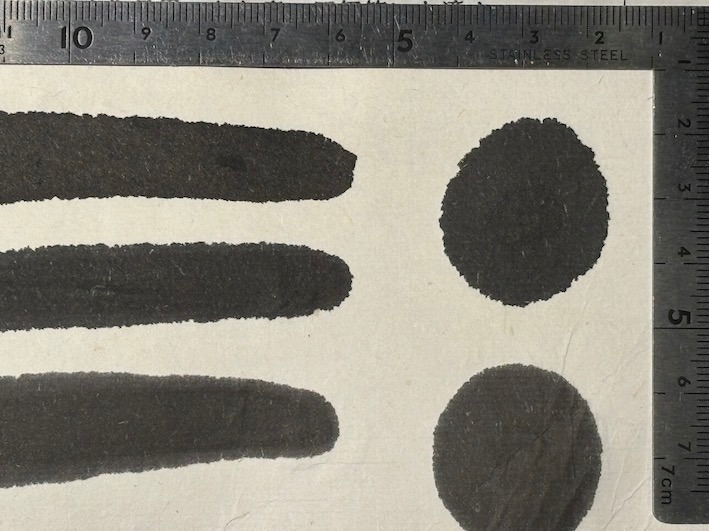 菜種油を使った最も粒子の細かい最高級の油煙です。濃墨ですと艶のある純黒で、淡墨は茶色系の黒です。のびが良く、漢字、仮名作品に最適です。