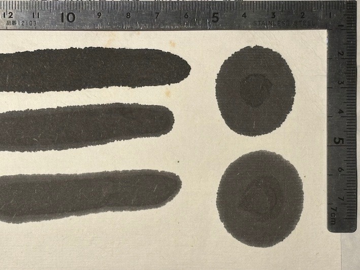 最高級油煙墨 菜種油を使った最上級の油煙です。濃墨ですと艶のある純黒で淡墨ですと茶系の黒です。