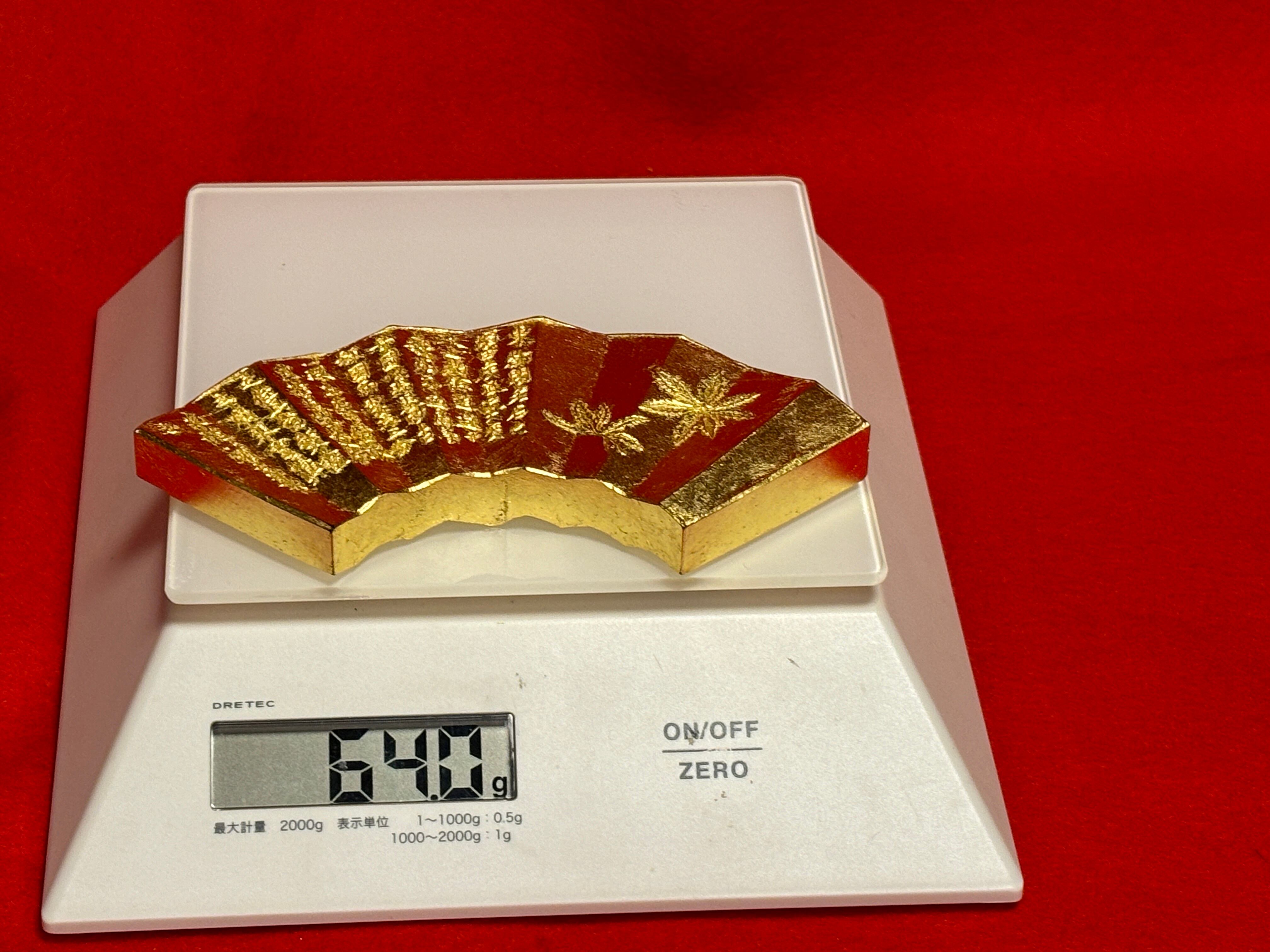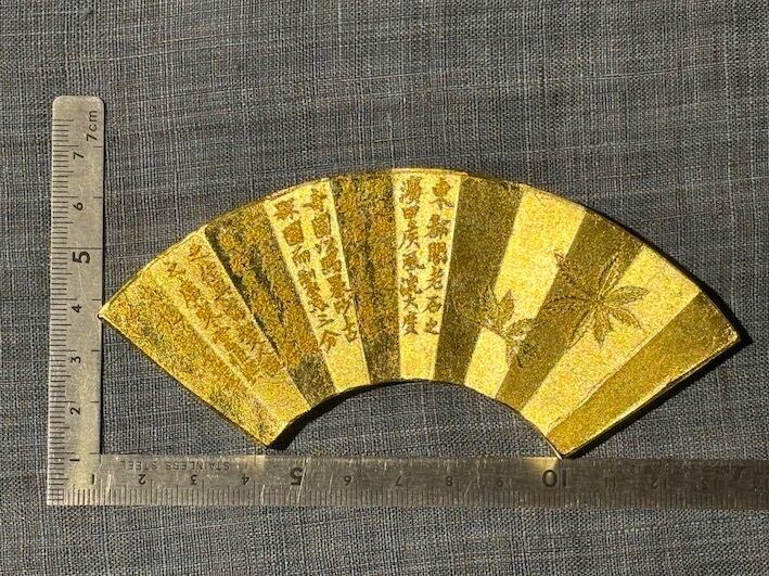<特 徴> 油煙墨で作られており扇面を模したお墨に金箔を貼っています。